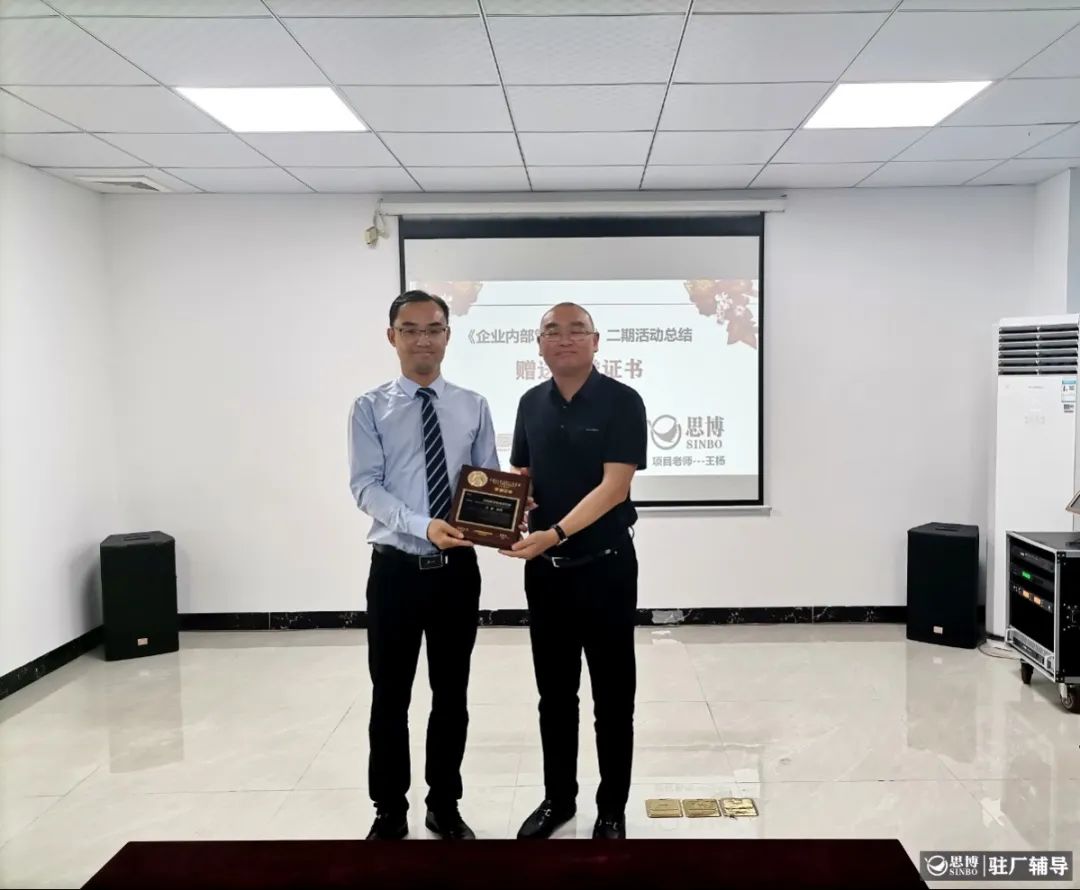 莫總首先回顧了一期、二期項目的整體實施模塊,并進行了總結。 為期一年的合作臨近結束,莫總由衷的分享了1個主題及3點改善建議: 主題:堅持執(zhí)行,堅持以組織職能流程的運行,堅持以產值目標為導向的生產計劃或交付模式的運行,堅持多勞多得的增量產值激勵或增量目標激勵。 改善建議: 構建以市場為導向的營銷體系; 構建以盈利為導向的降本增效的系列活動; 構建以支撐到業(yè)績倍增的產銷研團隊的培養(yǎng)。 6、授予榮譽證書: