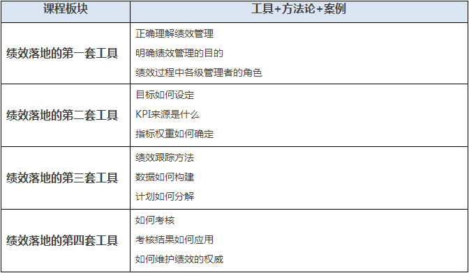 | 《職業(yè)總經(jīng)理訓(xùn)練營(yíng)》系列課程之 實(shí)戰(zhàn)績(jī)效落地4套工具 |