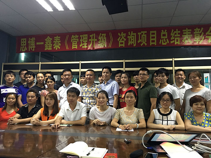 鑫泰羅總對(duì)各管理層進(jìn)行了表彰,也對(duì)思博團(tuán)隊(duì)進(jìn)行了感謝發(fā)言:“鑫泰公司管理升級(jí)完滿(mǎn)收官,感謝思博袁老師辛苦付出,感謝嚴(yán)總和楊老師對(duì)我司大力支持!合作非常成功!通過(guò)此次管理升級(jí),公司打造了一個(gè)全新的、標(biāo)準(zhǔn)化、規(guī)范化、數(shù)據(jù)化的管理模式,讓我們大家一起努力,創(chuàng)造一個(gè)美好的未來(lái)。”