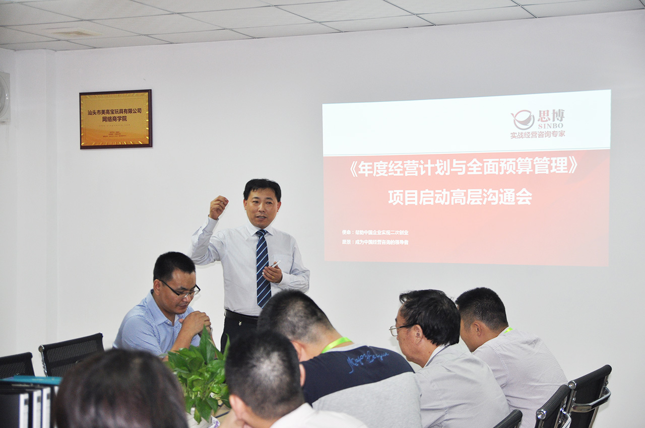 2016年9月5日,在深圳思博輔導(dǎo)老師(伍純?nèi)A老師 、曾燦老師)的指導(dǎo)下,汕頭市澄海區(qū)美高寶玩具有限公司《企業(yè)年度經(jīng)營(yíng)計(jì)劃與全面預(yù)算》管理升級(jí)項(xiàng)目啟動(dòng)會(huì),在汕頭市澄海區(qū)美高寶玩具有限公司會(huì)議室舉行。