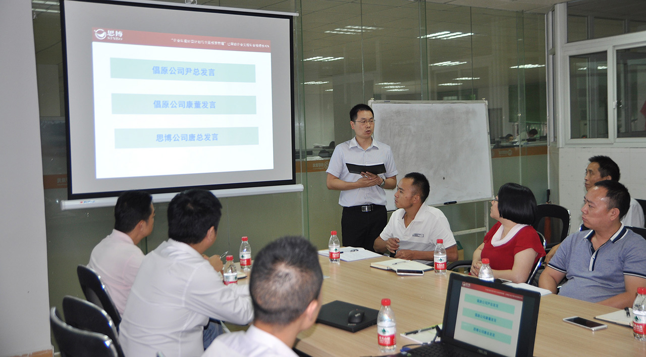 會(huì)議中倡原董事長(zhǎng)康總再次向全體與會(huì)人員說明了聘請(qǐng)深圳思博咨詢公司的目的,也再次肯定了兩位老師的實(shí)力和工作態(tài)度,并對(duì)思博團(tuán)隊(duì)有了充分的信心。相信在思博團(tuán)隊(duì)的帶領(lǐng)下,倡原公司肯定會(huì)越走越好,感謝思博團(tuán)隊(duì)的全心全力付出。