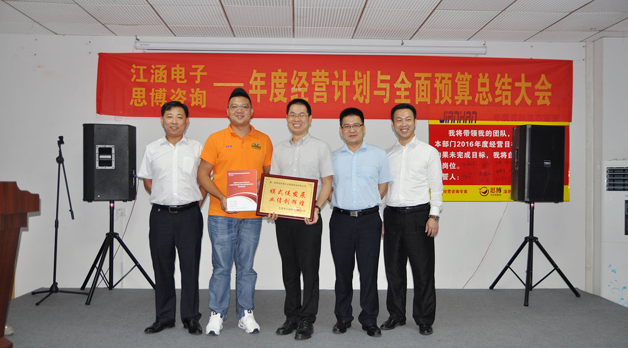 2016年10月24日,在深圳思博老師的指導下, 東莞市江涵電子有限公司 2016年《年度經(jīng)營計劃與全面預算》管理項目圓滿結項,總結大會在江涵會議室舉行。