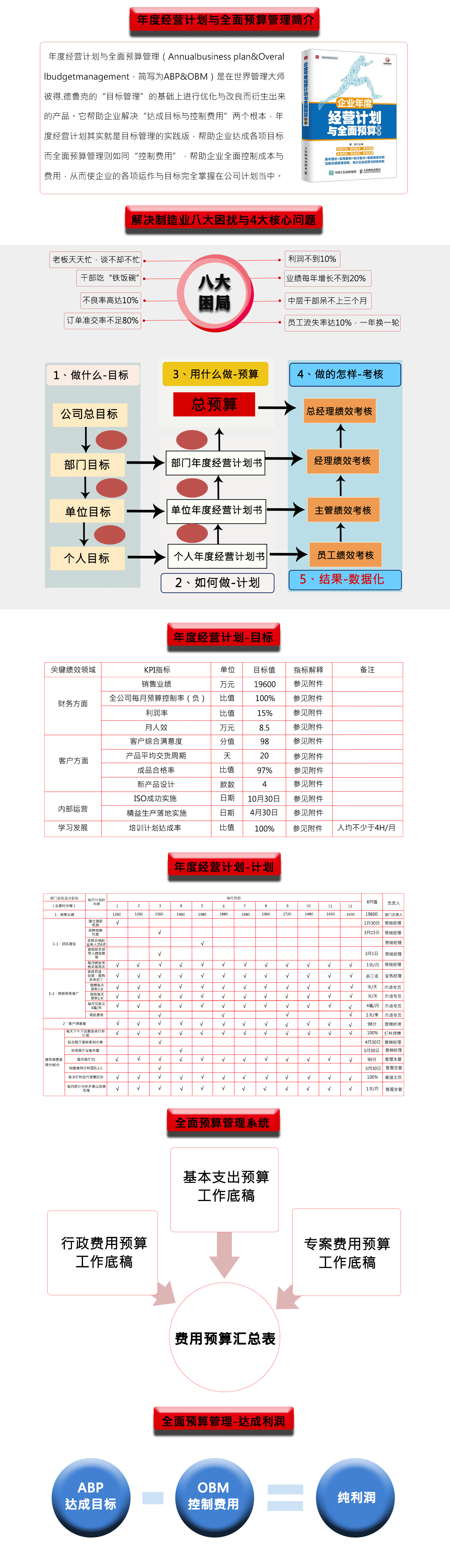 深圳市思博企業(yè)管理咨詢有限公司(sinbo) 是擁有多年管理實(shí)踐的實(shí)戰(zhàn)型管理咨詢企業(yè),思博數(shù)十人的咨詢師團(tuán)隊(duì)用近十年的時(shí)間潛心研究世界管理大師彼特·德魯克的目標(biāo)管理及臺(tái)灣陳宗賢教授的企業(yè)經(jīng)營(yíng)計(jì)劃管理,同時(shí)深入日本、臺(tái)灣、歐美等知名企業(yè)學(xué)習(xí)先進(jìn)管理理念及技能,結(jié)合中國(guó)企業(yè)本土化的特點(diǎn),成功研究出一套適合中國(guó)國(guó)情的企業(yè)經(jīng)營(yíng)管理系統(tǒng)《企業(yè)年度經(jīng)營(yíng)計(jì)劃與全面預(yù)算管理》。該系統(tǒng)在思博團(tuán)隊(duì)的潛心指導(dǎo)下,已成功幫助中國(guó)數(shù)百家企業(yè)實(shí)現(xiàn)年業(yè)績(jī)?cè)鲩L(zhǎng)40%