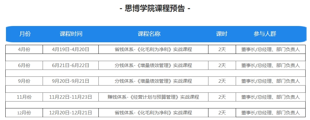 深圳市思博企業(yè)管理咨詢有限公司(sinbo) 是擁有多年管理實(shí)踐的實(shí)戰(zhàn)型管理咨詢企業(yè),思博數(shù)十人的咨詢師團(tuán)隊(duì)用近十年的時(shí)間潛心研究世界管理大師彼特·德魯克的目標(biāo)管理及臺(tái)灣陳宗賢教授的企業(yè)經(jīng)營(yíng)計(jì)劃管理,同時(shí)深入日本、臺(tái)灣、歐美等知名企業(yè)學(xué)習(xí)先進(jìn)管理理念及技能,結(jié)合中國(guó)企業(yè)本土化的特點(diǎn),成功研究出一套適合中國(guó)國(guó)情的企業(yè)經(jīng)營(yíng)管理系統(tǒng)《企業(yè)年度經(jīng)營(yíng)計(jì)劃與全面預(yù)算管理》。該系統(tǒng)在思博團(tuán)隊(duì)的潛心指導(dǎo)下,已成功幫助中國(guó)數(shù)百家企業(yè)實(shí)現(xiàn)年業(yè)績(jī)?cè)鲩L(zhǎng)40%